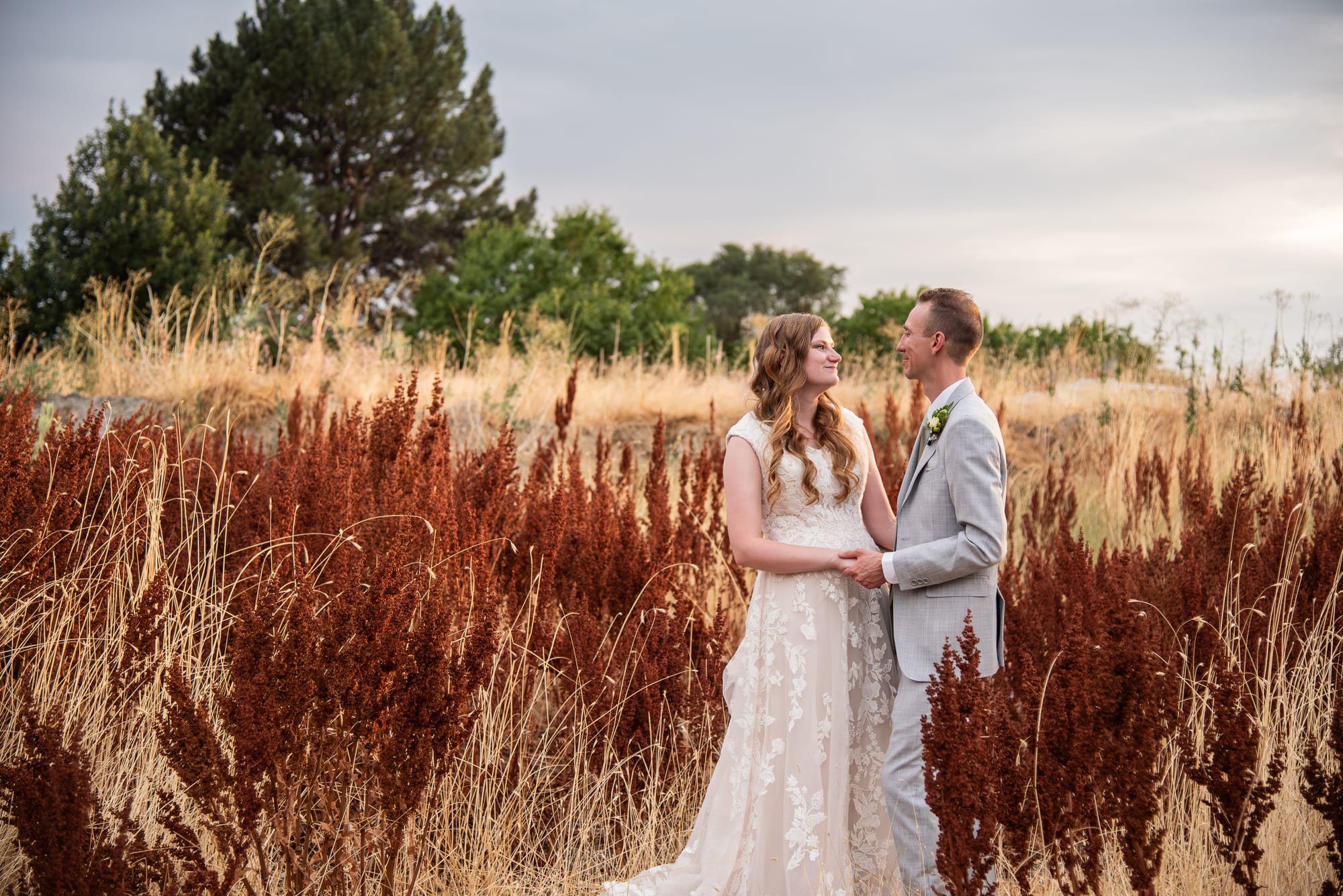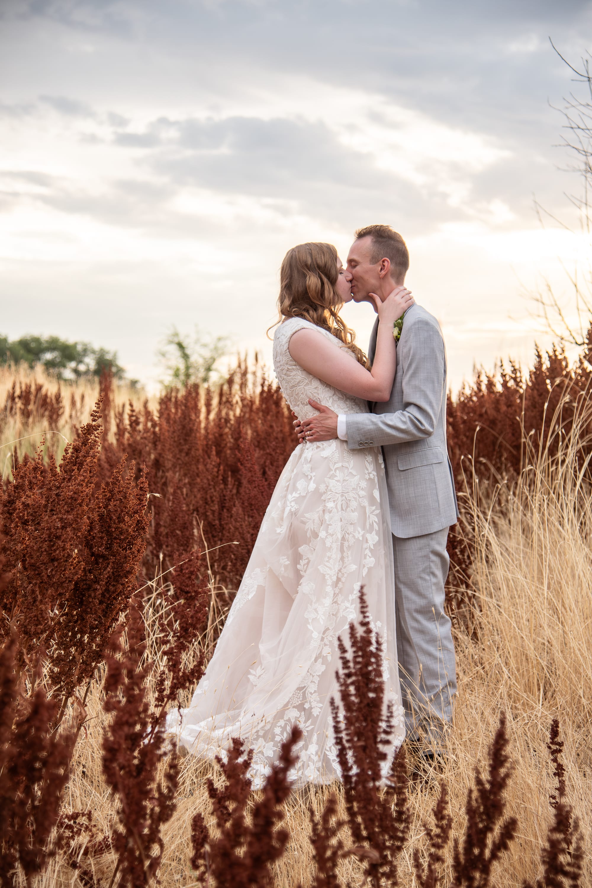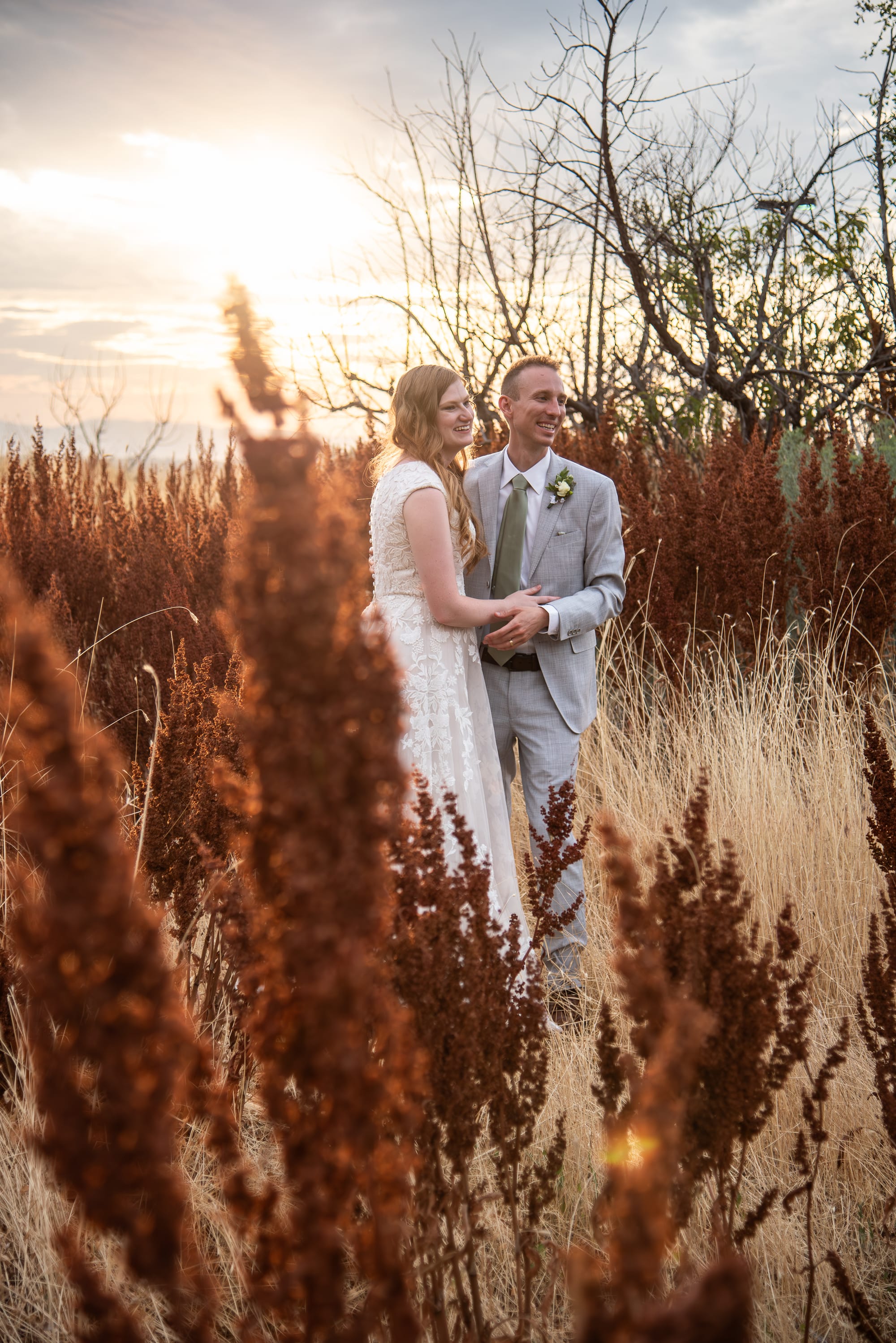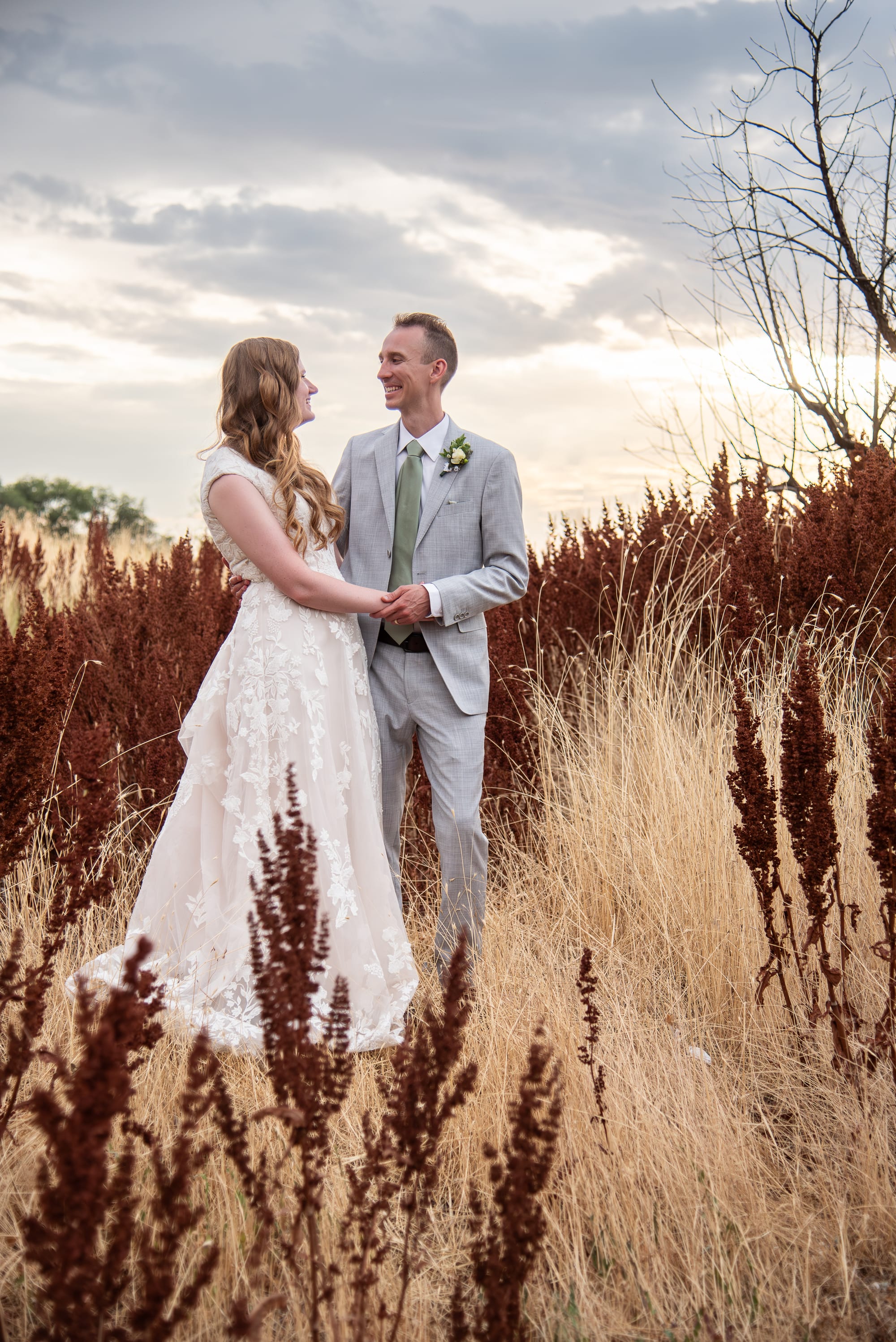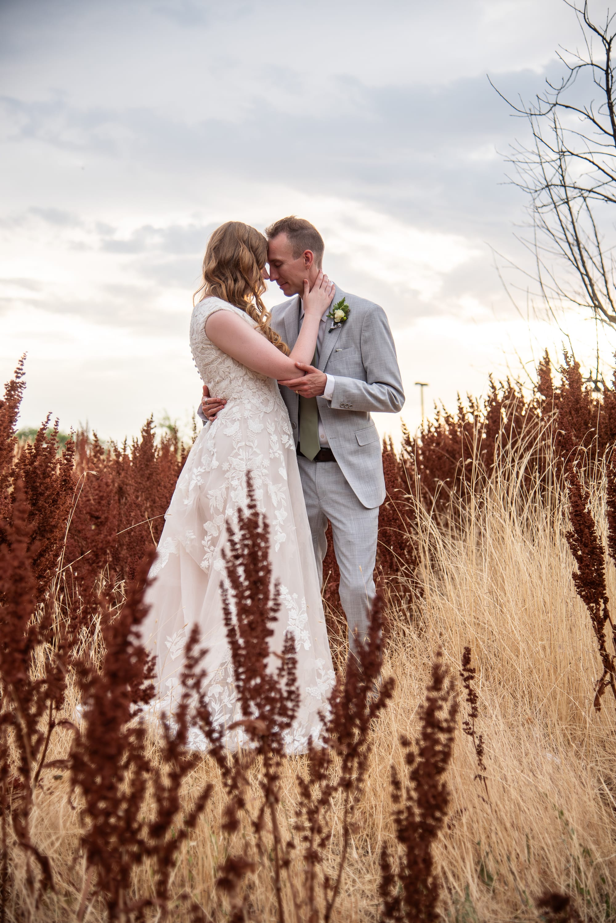There is a place in Cedar City that has these dark reddish-brown weeds. For years, I have been driving past, wishing that it was a spot I could take pictures. Whatever these weeds are, I have loved them from afar. Imagine my excitement as I pulled up to the reception location saw this spot. It's literally a patch of weeds between two parking lots, but I knew I had finally found my spot. My longing for these weeds was spot on. So grateful that Britain and Angie were willing to take pictures on their wedding day in a weed patch just steps away from a parking lot. We were running out of light, but we ran over to the Brigham City temple as well as night took over, finishing up using the lights that shine on the temple each night.